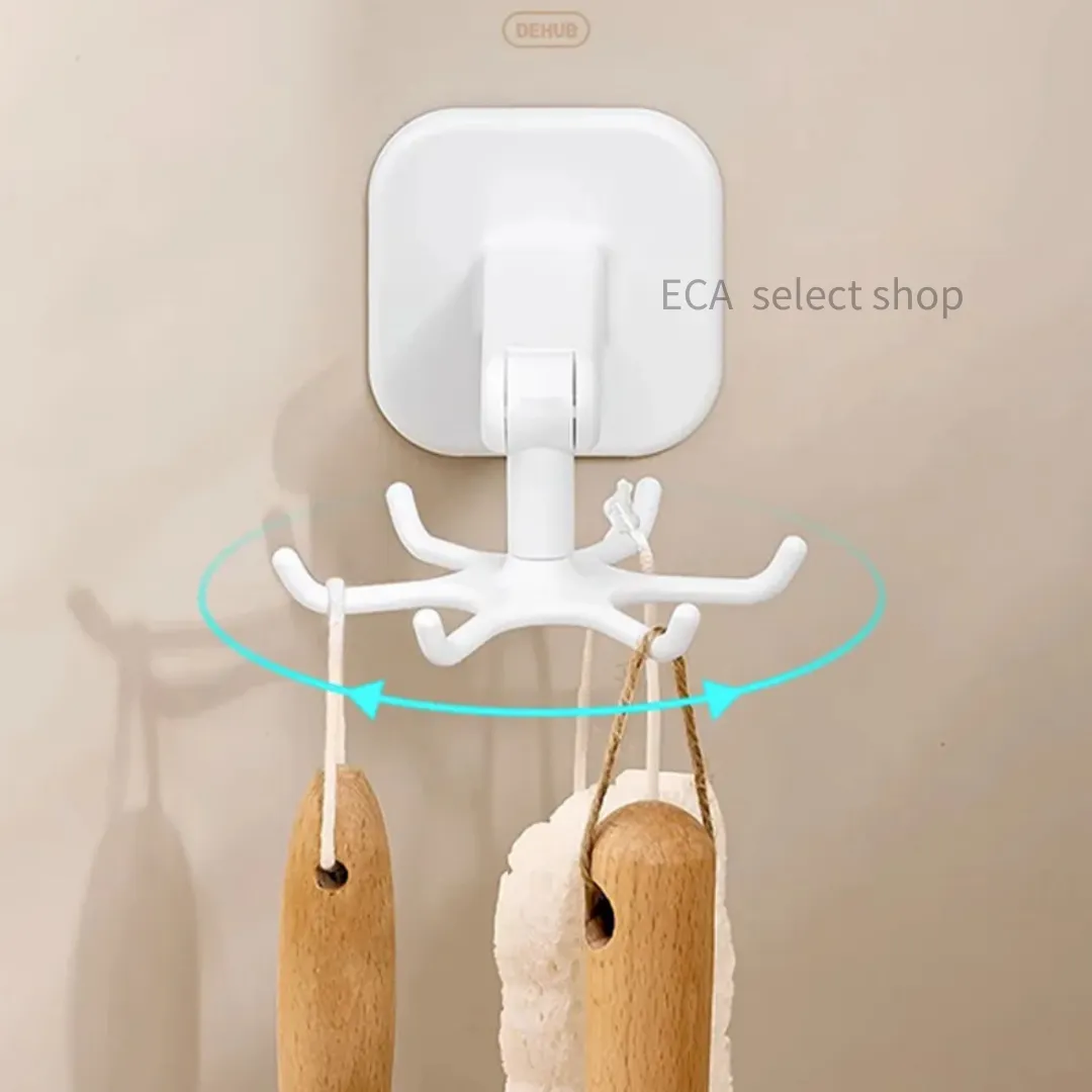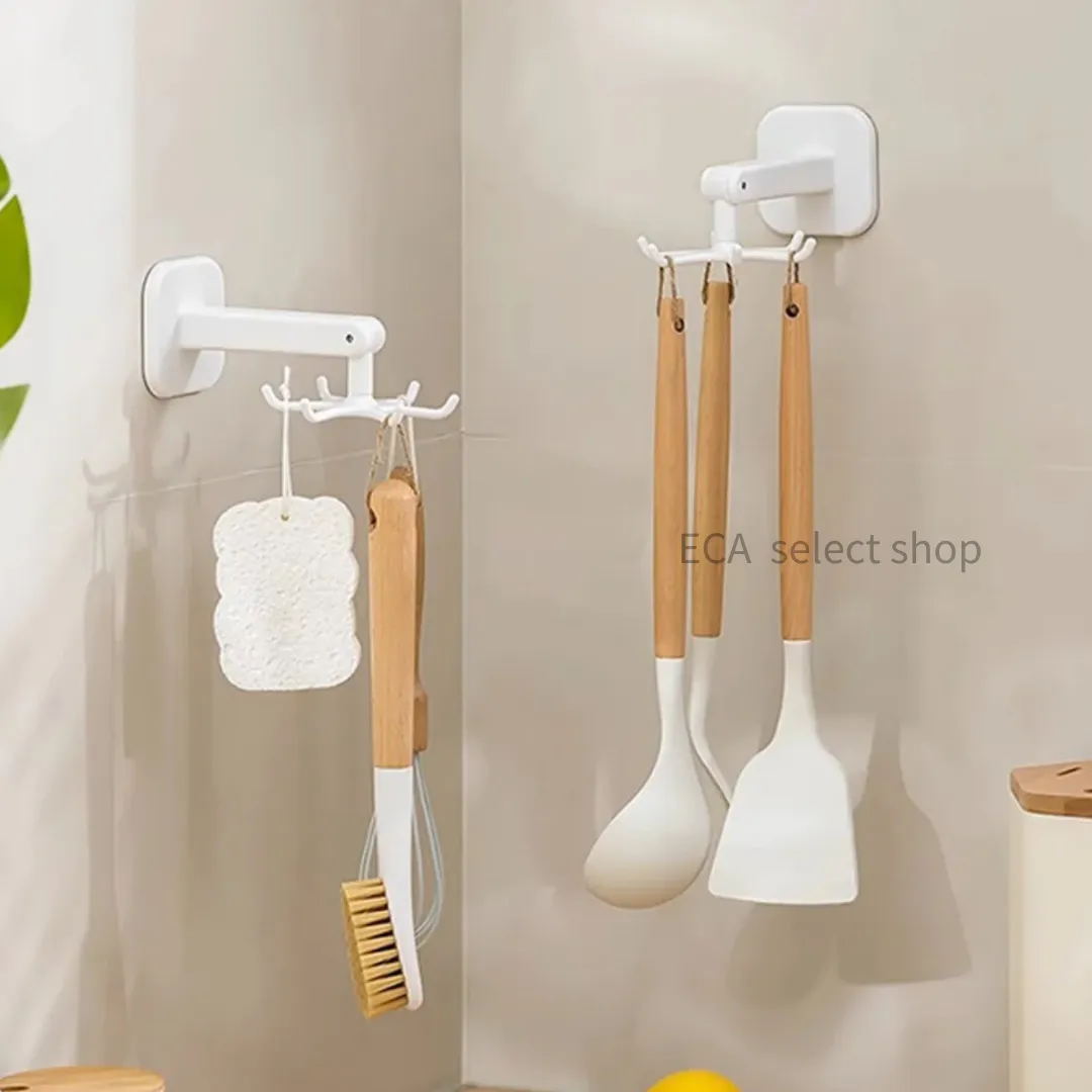 多功能旋轉掛鈎、廚具輕鬆壁掛收納、節省空間、360度旋轉、六鈎收納、防潮防油、